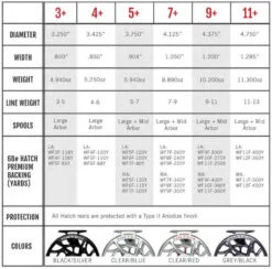 - Different sets of milled fly pattern silhouettes on interior of each frame relevant to the size of the reel