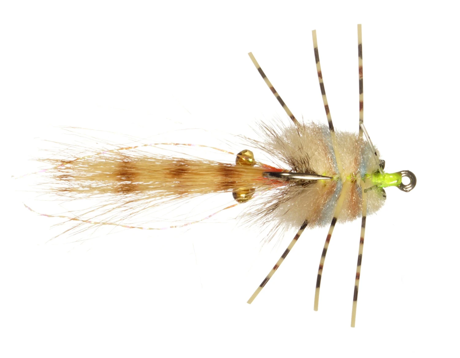 This fly hits the water surprisingly soft. Use this fly for Permit anywhere and it will even fish for larger Bonefish on the ledges. It has some blue in the body and many guides favor this fly while fishing over turtle grass and other places where blue crabs can be found. A good option to have in the box. We won’t travel without it.