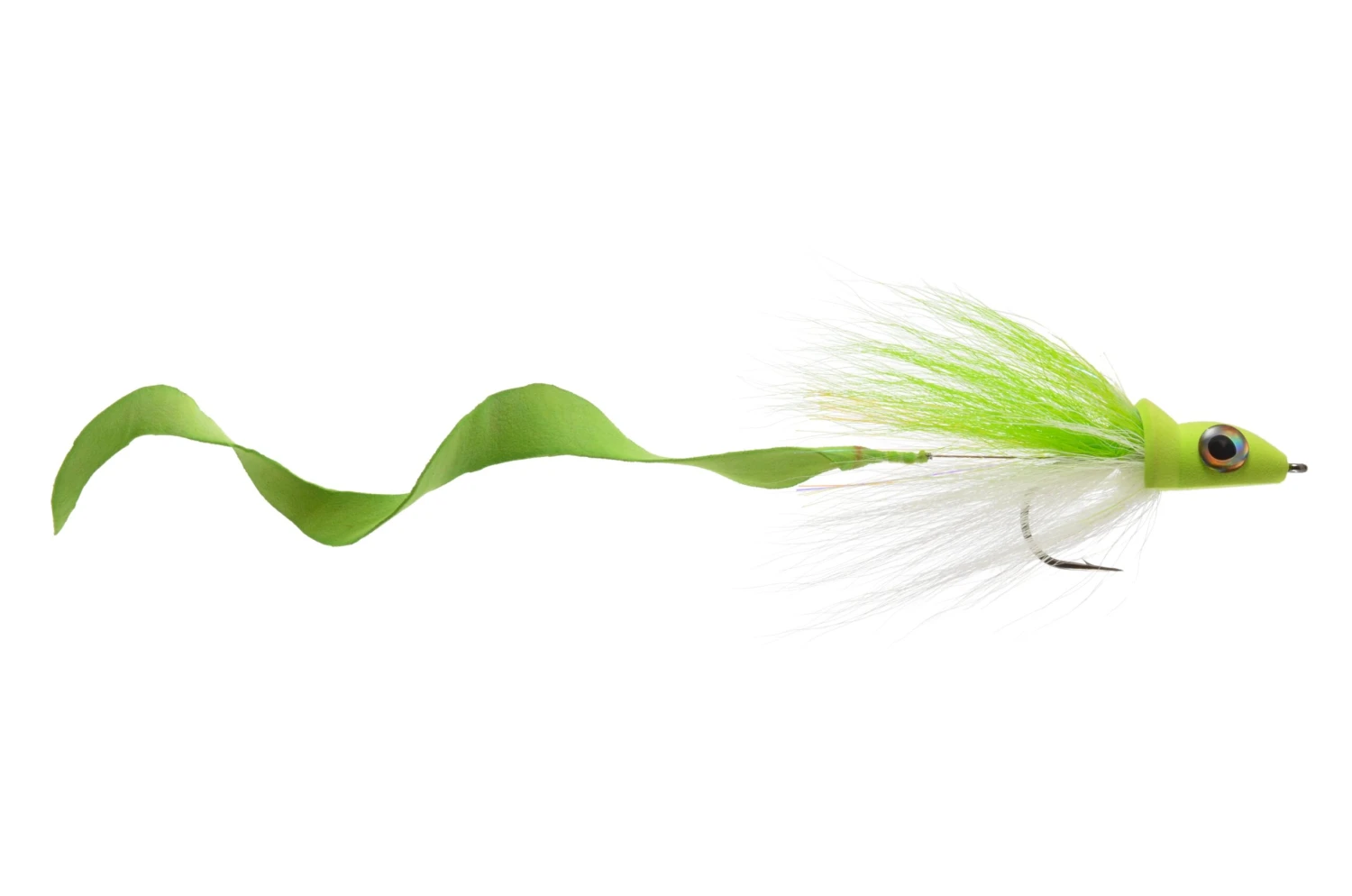 A tried and true jumbo offering for toothy critters. This is the mother load! It actually casts fairly well and the tail moves at even the slowest strip. Fish it on a floating line for surface takes, or a sinking line for a levitating presentation.