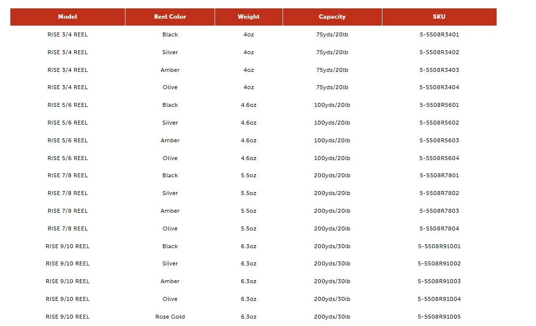 | Reel Size | 3/4wt, 5/6wt, 7/8wt, 9/10wt |